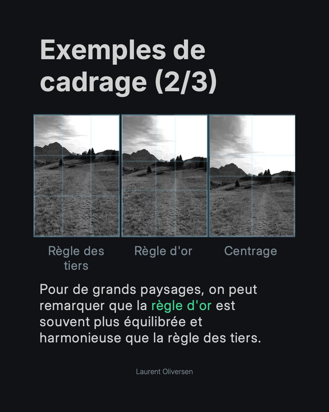 La règle d’or sera plus adaptée à des paysages avec des lignes d’horizon (la règle des tiers peut avoir tendance à créer un trop fort déséquilibre). Encore une fois, c’est du feeling…